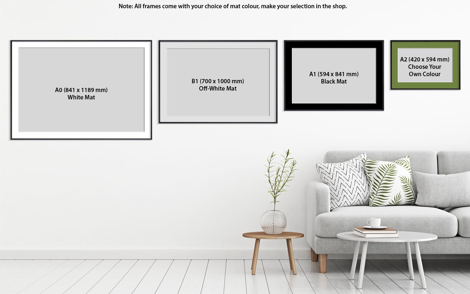 All frames come with a 50mm border, so the frame size/image size is as below: