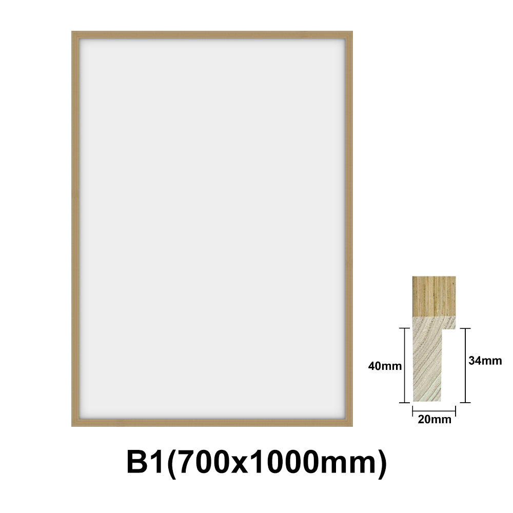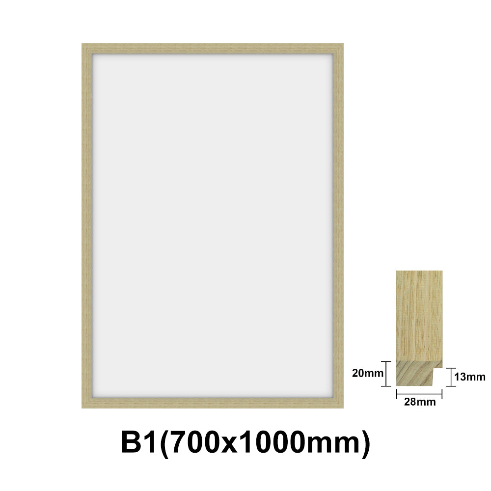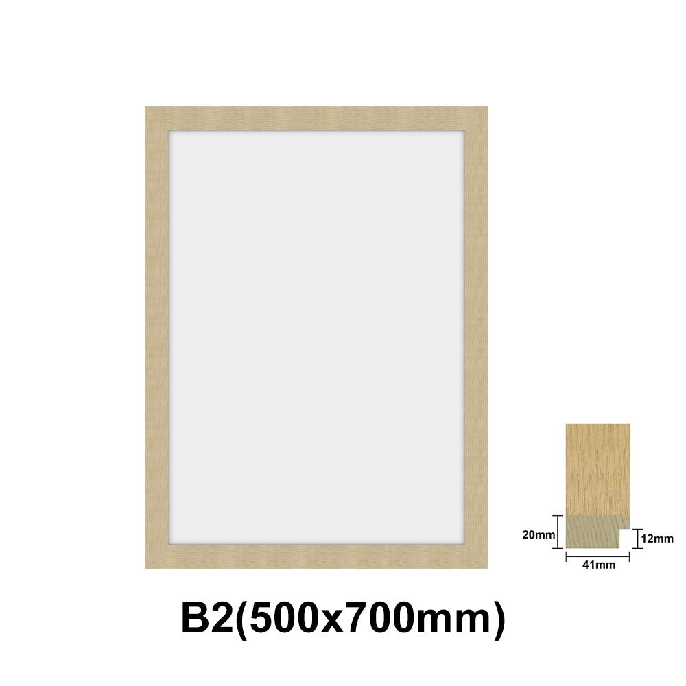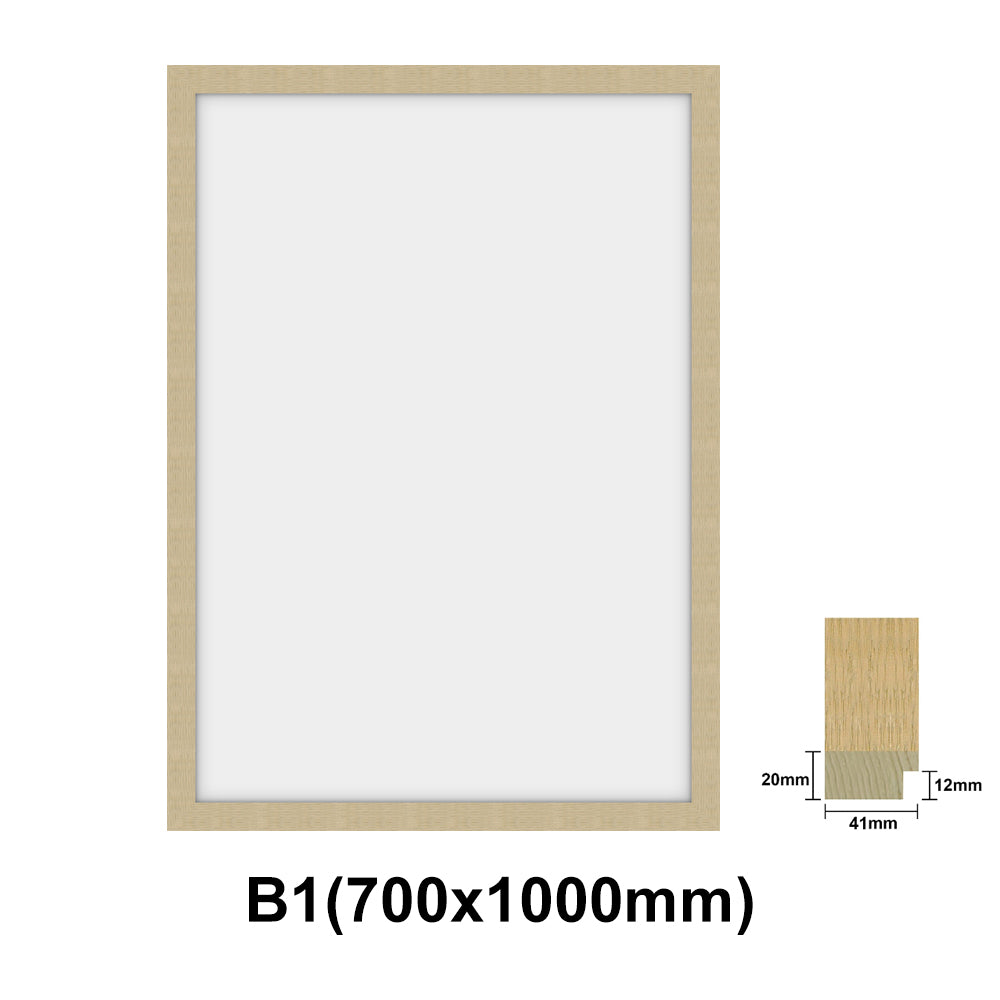 Oak Photo frame, Oak picture frame, B1(700x1000mm), B2(500x700mm), B3(350x500mm), 4 styles of frame. All sizes from this listing are come with 2mm clear Perspex to avoid breakage. Frames are made to order and dispatched from our factory.